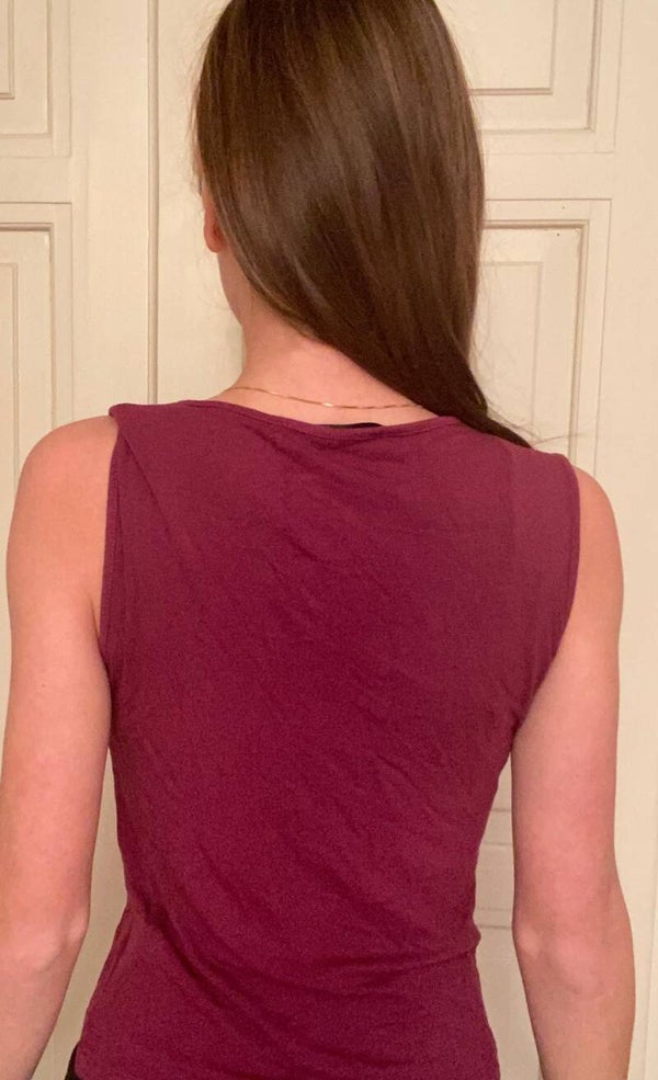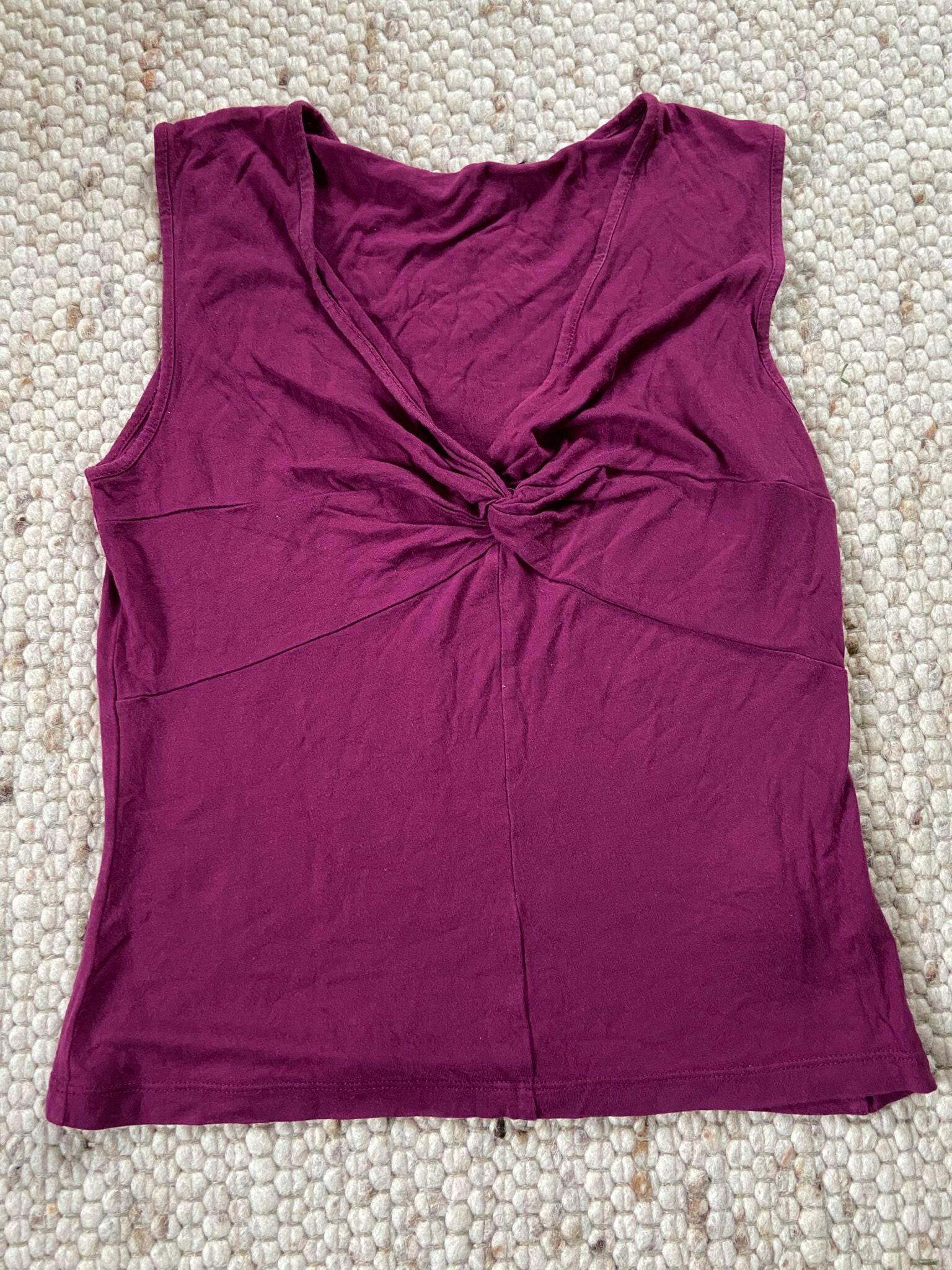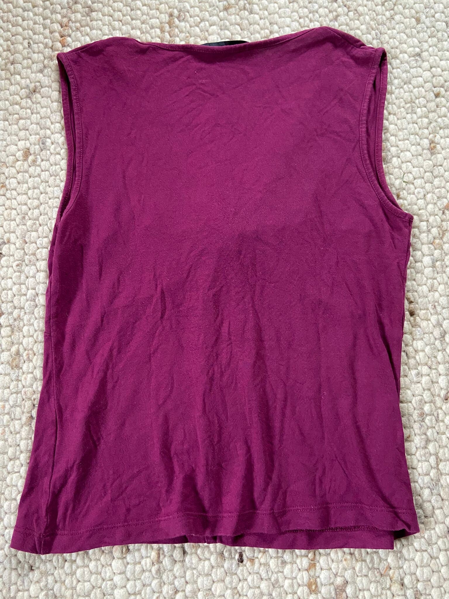 Burgundy red top with gathered neckline. In very good condition, rarely worn, very slightly stretched. Purchased at a flea market in Switzerland. Also possible to wear off-shoulder (image 4).