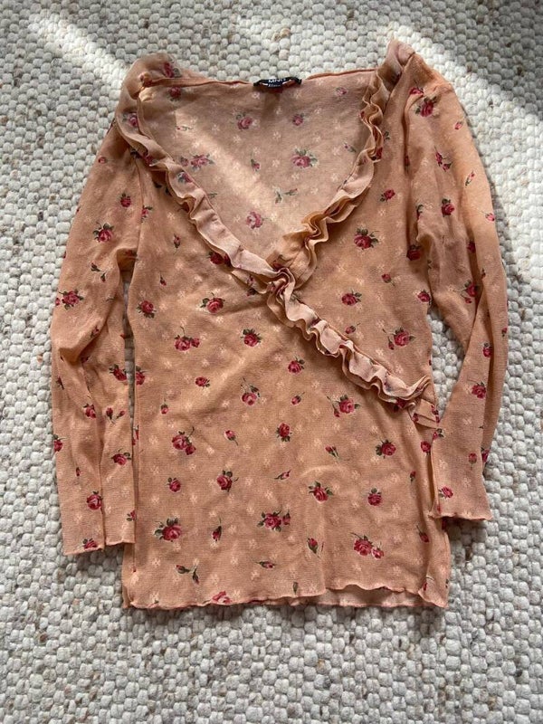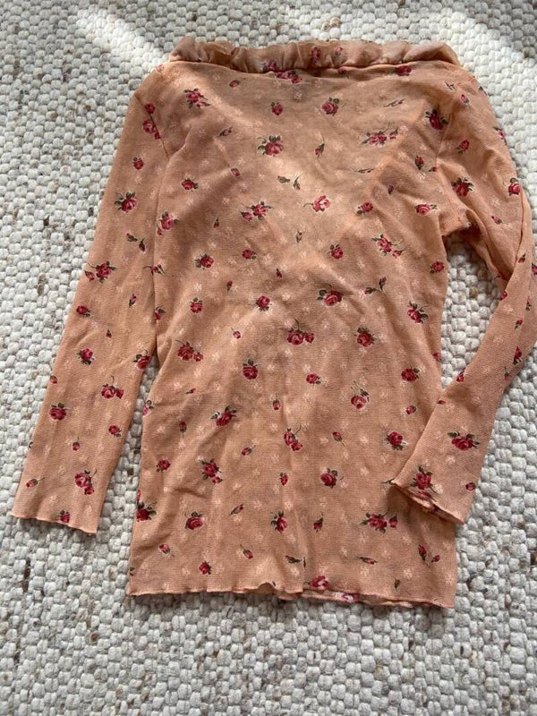 "Mango"Longsleeve with flower print and ruffles, see-through. In good condition, a few times worn. Bought on a flea market in Switzerland.