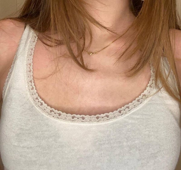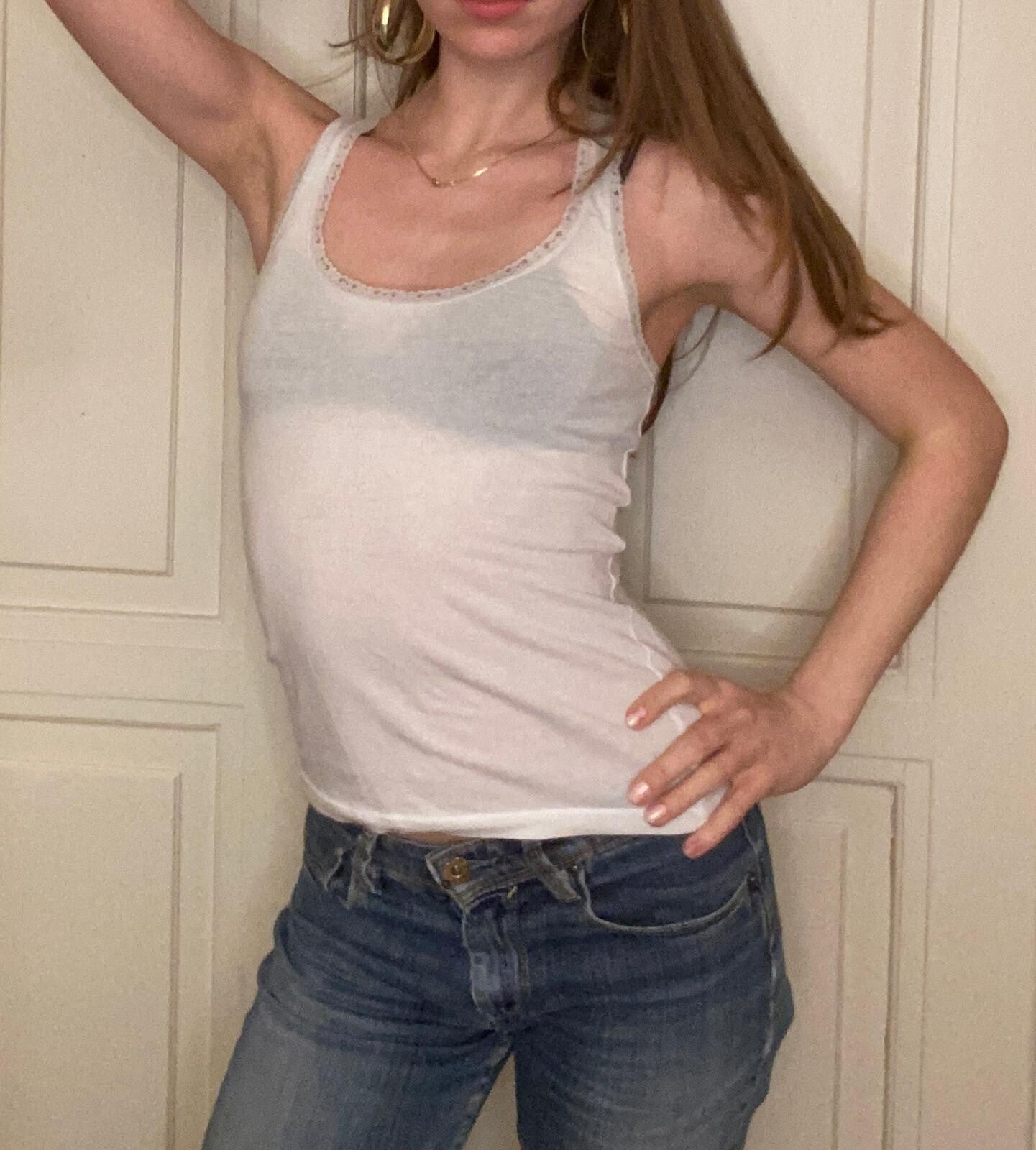 White Tanktop with lace details. In good condition but with slight pilling and in some places a little yellow touch but rarely noticeable. Bought on a flea market in Switzerland.